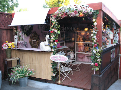 My backyard is not your typical backyard. Sure, we have a pool, gazebos and the like.... but we also have a pirate ship, a pirate store and a pirate tattoo parlor. This year, our pirate ship got a roof added to the cabin.... last years sails were spruced up with some skull and crossbones.
